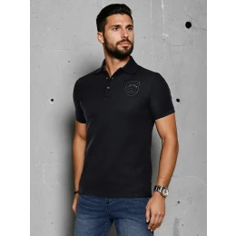 Koszulka polo męska z krótkim rękawem to klasyka w nowoczesnym wydaniu. Model z zapięciem na guziki i subtelną naszywką na piersi dodaje stylu codziennym zestawom. Wykonana z przyjemnego materiału, zapewnia wygodę przez cały dzień. Idealna na spotkania, spacer czy wypad do miasta w ciepłe dni.
