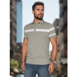 Toto pánske polo tričko s krátkymi rukávmi je univerzálnou voľbou na každodenný štýl. Klasický golier na gombíky dodáva eleganciu, zatiaľ čo ozdobný prúžok na prednej strane a detaily na rukávoch rozbíjajú jednoduchosť strihu. Pohodlný strih zaručuje voľnosť pohybu, zatiaľ čo ľahká tkanina je ideálna na teplejšie jarné dni.