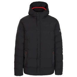 Pánská prošívaná bunda Trespass Habbton se syntetickou výplní, celoplošným zipem s klopou, kapucí a postranními uzavíratelnými kapsami.