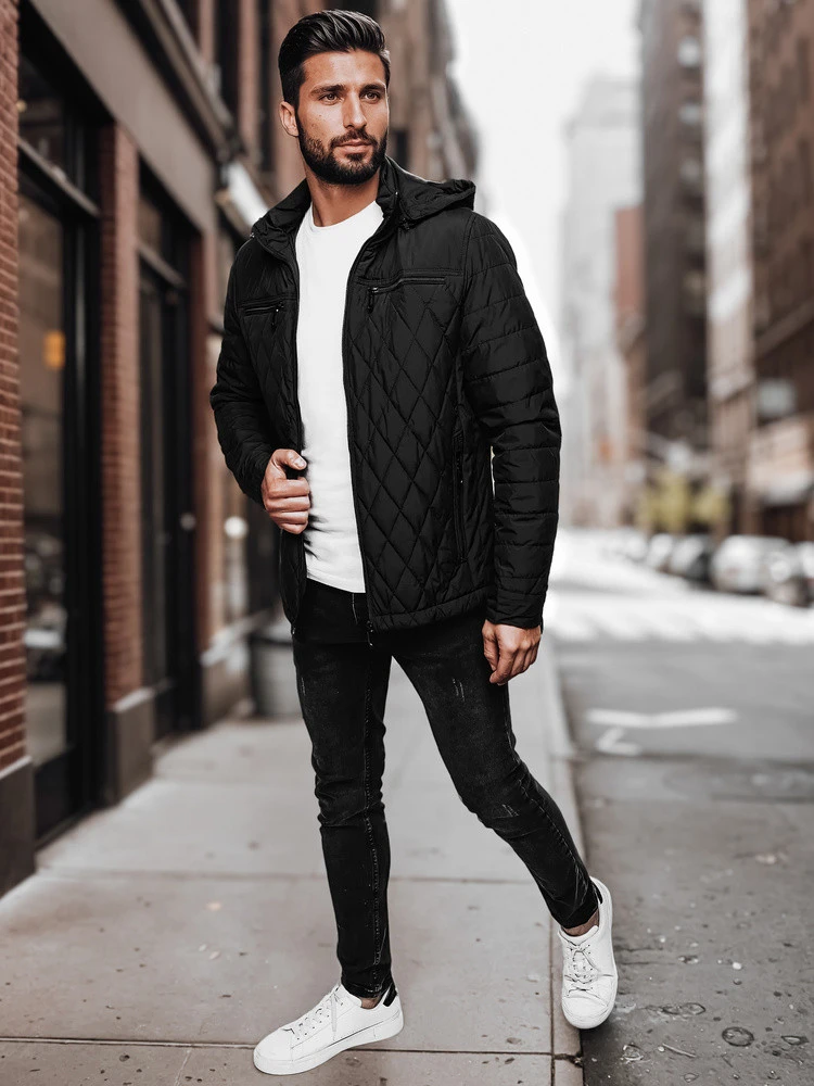 Pánska prešívaná bunda s kapucňou čierna Dstreet TX4989