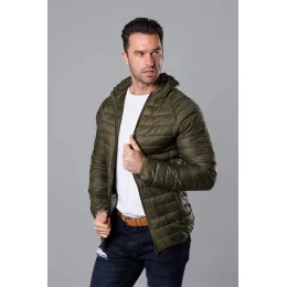 Pánska prešívaná bunda v olivovej farbe s kapucňou (HM112-7)