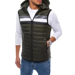 - Pánska prešívaná vesta s kapucňou.