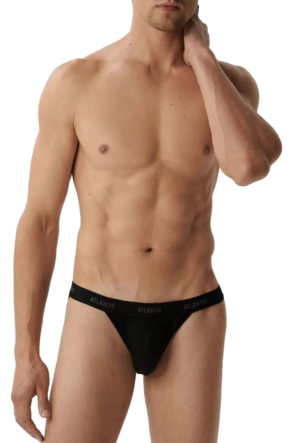 Pánská tanga 3 pack 1582 Atlantic - černá barva - z vysoce jakostní bavlny - 3 ks v balení - sexy střih - komfortní guma s nášivkou ATLANTIC - výhodné balení 3 kusůMateriálové složení: 95% bavlna + 5% elastan