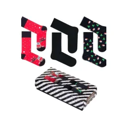 Sada pánskych vianočných ponožiek obsahuje 3 páry pánskych vianočných ponožiek a obsahuje dva páry ponožiek s veselým vianočným vzorom a jednu obyčajnú ponožku, ktorá sa hodí k obleku.