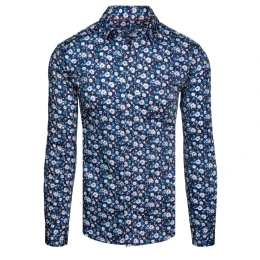 Pánska vzorovaná košeľa s dlhým rukávom tmavomodrá FashionStreet DX2671