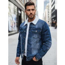 Pánská zateplená džínová bunda s ovčí kůží modrá Dstreet model 21995193 - FashionStreet