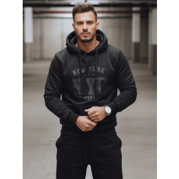 Pánska mikina s potlačou v mestskom štýle na prednej strane, vyrobená z mäkkej tkaniny s fleecovou izoláciou na vnútornej strane. Model predstavuje moderný dizajn s motívom "NYC" inšpirovaný americkou streetwearovou módou. Mikina má praktickú kapucňu so sťahovacou šnúrkou, klokanie vrecko a elastické manžety a spodný lem.