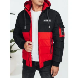 Kurtka męska zimowa z kapturem czarno-czerwona Dstreet TX5052