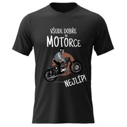 Vtipné tričko s potiskem VŠUDE DOBŘE NA MOTORCE NEJLÍP! – styl s nadhledem