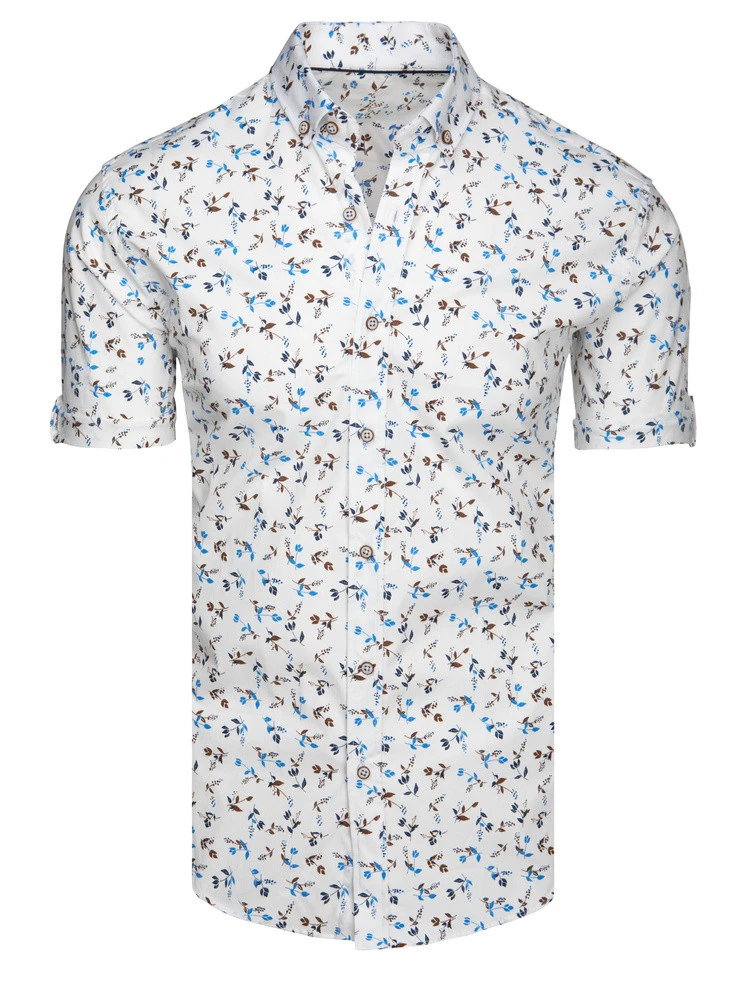 Koszula męska z krótkim rękawem o fasonie slim fit to świetny wybór na cieplejsze miesiące. Wzór z drobnymi listkami i kwiatami dodaje jej świeżości oraz charakteru. Kołnierzyk button-down wraz z zapięciem na guziki nadają jej eleganckiego wykończenia. Idealna do stylizacji codziennych i smart casual – sprawdzi się na wiosenne spotkania lub letnie wyjścia.