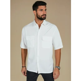 Stylowa koszula męska wykonana z wysokiej jakości wiskozy to must-have na sezon wiosenny. Model z krótkim rękawem, kołnierzykiem i zapinany na guziki doskonale sprawdza się w codziennych i półformalnych stylizacjach. Dwie kieszenie z przodu dodają praktycznego charakteru, a naturalny materiał zapewnia komfort przez cały dzień.