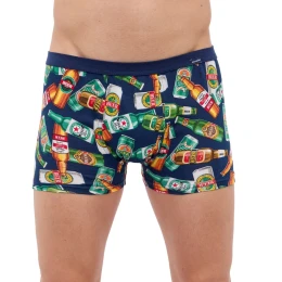 Pánske boxerky 280/236 Tatoo Bottles CORNETTE - tmavomodrá farba - vyrobené z kvalitnej bavlny - zdobené farebnou veselou potlačou - elastický plochý šev - podšité bavlnou - lem nohavíc netlačí do stehien, takže boxerky sú pohodlné a príjemne sa nosia