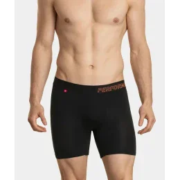 Boxerky ideálne priliehajú k telu a majú športový strih s nízko význačným pásom a dlhými nohavičkami. Boxerky majú tvarujúci švy, vďaka ktorým nepocítite tlak či diskomfort. V páse modelu je široká vonkajšia guma s nápisom Performance. Model je vyrobený z jemného a na dotyk príjemného bambusu s prídavkom elastanu, ktorý má termoregulačné vlastnosti - v horúcich dňoch boxerky poskytujú pocit chladu a v zime hrejú.