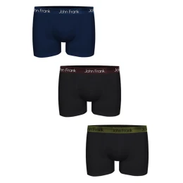 Pánské boxerky značky John Frank z vysokého podílu bavlny. Boxerky jsou velmi příjemné na dotek a pohodlné při nošení. Jemná, širší gumička v pase má kolem logo John Frank. Balení obsahuje 3 kusy boxerek dle obrázku.