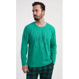 Pánske bavlnené pyžamo s dlhým rukávom Tetris. Pánske pyžamo sa skladá z trička s dlhým rukávom a dlhých nohavíc. Tričko s okrúhlym výstrihom zdobí obrázok hry Tetris na hrudi. Tričko dopĺňajú kárované nohavice, ktoré majú elastický pás, šnúrku na stiahnutie a praktické vrecká. Použitý materiál zo 100 % bavlny je príjemný a pružný na dotyk.