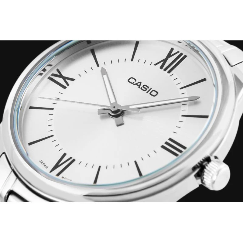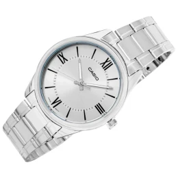 Wyróżnij się stylem zarówno w pracy, jak i podczas czasu wolnego dzięki linii eleganckich zegarków Casio MTP-V005. To Klasyczny zegarek analogowy CASIO zaprojektowany w oparciu o ponadczasowy wygląd wskazówek godzinowej, minutowej i sekundowej. Prosty, czytelny design tarczy sprawia, że łatwo jest być punktualnym. Zegarek wyróżnia się elegancką srebrną tarczą, która nadaje mu stylowy wygląd. Ciemne indeksy i delikatne wskazówki wyraźnie odcinają się na jasnym tle, zapewniając doskonałą czytelność. Srebrna koperta oraz elegancka bransoleta ze stali nierdzewnej tworzą spójną, stylową całość. Prosty design, wskazówki z fluorescencją i odporność na zachlapania sprawiają, że ten model CASIO to idealny wybór na co dzień.