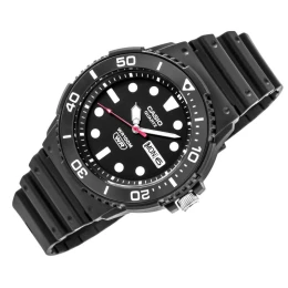 Casio MRW-230H-1E2VDF to solidny zegarek sportowy stworzony z myślą o aktywnych użytkownikach, którzy cenią niezawodność i praktyczne rozwiązania. Duża, czytelna tarcza z wyraźnymi indeksami oraz funkcją dnia tygodnia i daty zapewnia wygodę odczytu w każdej sytuacji, a mocna koperta i pasek z żywicy gwarantują trwałość i komfort noszenia. Wodoszczelność na poziomie 100 metrów pozwala swobodnie korzystać z zegarka podczas pływania i uprawiania sportów wodnych, a lekka konstrukcja sprawia, że zegarek pozostaje niemal niewyczuwalny na nadgarstku. To połączenie sportowego charakteru, nowoczesnego designu i funkcjonalności, które sprawdzi się zarówno na co dzień, jak i w czasie przygód na świeżym powietrzu.
