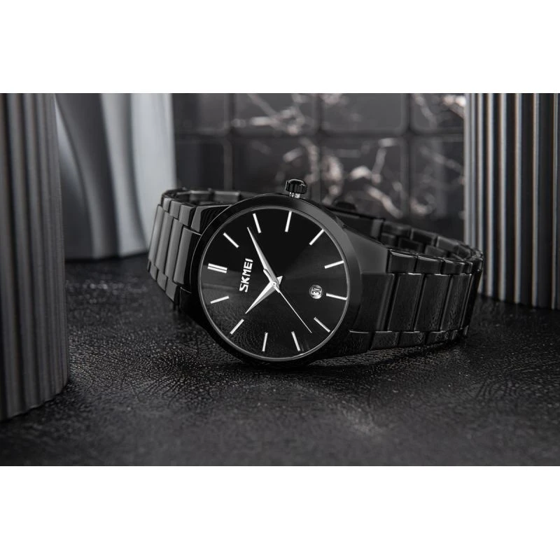SKMEI 9140 sú hodinky, ktoré by mali byť v zbierke každého muža, ktorý oceňuje jednoduchosť a triedu. Minimalistický ciferník s dátumovkou, dokončený s maximálnou precíznosťou, dokonale spolupracuje s jemnými indexmi a ručičkami, čím vytvára elegantnú a zároveň výraznú kompozíciu. Ak hľadáte hodinky, ktoré sa hodia k obleku aj ležérnemu štýlu tem model je voľbou, na ktorú sa môžete vždy spoľahnúť.