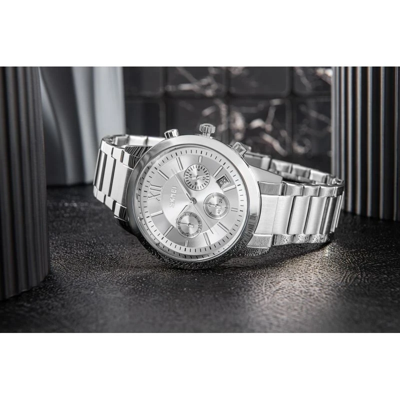 Bransolety zegarków Skmei wykonane z najwyższej jakości stali nierdzewnej, łączą w sobie surową wytrzymałość z elegancją, która przyciąga spojrzenia. Ich solidna konstrukcja to nie tylko symbol niezawodności, ale też pewność, że zegarek będzie trzymać się mocno na nadgarstku, bez względu na wyzwania dnia. Precyzyjne, bezpieczne zapięcie.