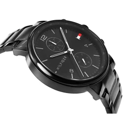 Komfortowa, stalowa bransoleta, to znakomite uzupełnienie tego zegarka. Duże ogniwa i zapięcie typu "click", są gwarancją solidności i wygody podczas codziennego użytkowania. Komfort dopełnia odpowiednia grubość bransolety, która komfortowo dopasowuje się do męskiego nadgarstka. Zapięcie sygnowane jest logiem marki Tommy Hilfiger, co podnosi prestiż zegarka i zapewnia wyjątkowość na tle innych marek zegarków.