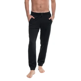 Pánské kalhotky ušité z látky typu french terry. Mají volnější střih, zúžené nohavice zakončené elastickým lemem, pas s regulací a boční kapsy na zip. Gramáž: 270g/m2.