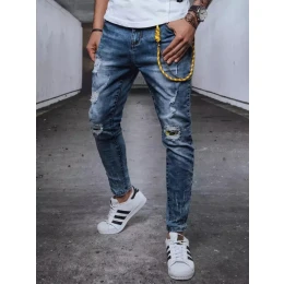 Pánské skinny džíny střihu na míru, které kombinují moderní vzhled s pohodlím při každodenním nošení. Model je vyroben ze strečového denimu, dobře padne a neomezuje v pohybu. Charakteristické odírání a ozdobný řetízek dodávají celku výrazný, městský charakter.