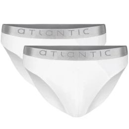 Pánske slipy 2 pack 013 white Atlantic - biela farba - vyrobené z kvalitnej bavlny - 2ks v balení - klasický strih - pohodlná guma s nášivkou ATLANTIC - výhodné balenie 2 ks