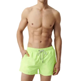 Pánske plavky 222 limetkové Atlantic - limetková farba - materiál na dotyk papiera - sťahovanie v páse - vrecká na bokoch - priedušná podšívka - rýchloschnúci materiál - logo Atlantic