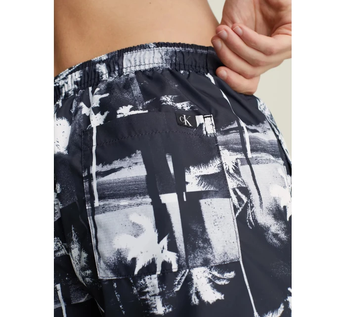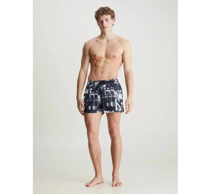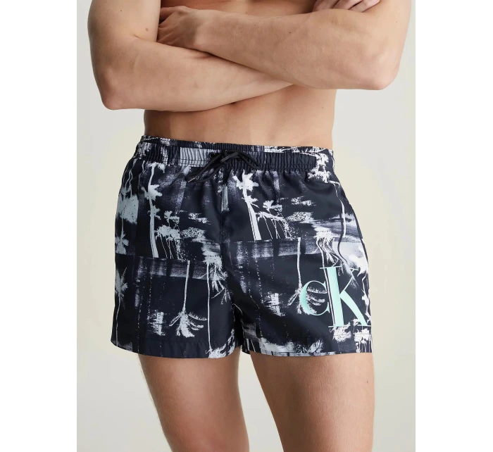 Pánske čierno-biele plavky s palmami KM0KM00968 0GL - Calvin Klein