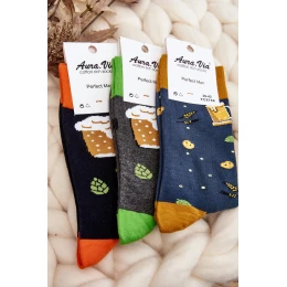 Męskie Skarpetki We Wzory Piwo Szaro-Zielone