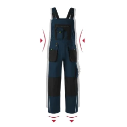 guma v zadnej časti bedrového goliera zapínanie na gombíky v bočnej časti šerpy s elastickou časťou nastaviteľná pracka 14 multifunkčných vreciek zdvojený materiál v oblasti kolien plastové "D" pútko a karabínka na kľúče a identifikačné karty pútko na kladivo dvojité prešitie pre vyššiu odolnosť vysoko odolný materiál vo farbe 01 retroreflexné prvky