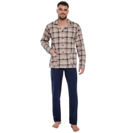 Pánske pyžamo 114/67 plus CORNETTE - vyrobené z kvalitnej bavlny - béžová košeľa v kocke s dlhými rukávmi a vreckami - zapínanie na gombíky - pohodlné jednofarebné dlhé nohavice Zloženie materiálu: 100 % bavlna