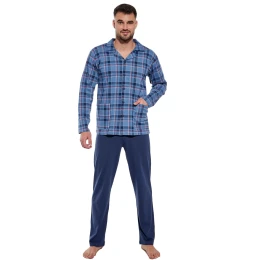 Pánske pyžamo 114/68 CORNETTE - vyrobené z kvalitnej bavlny - svetlomodré vzorované tričko s dlhými rukávmi a vreckami - zapínanie na gombíky - pohodlné jednofarebné dlhé nohavice