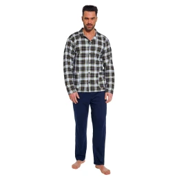 Pánske pyžamo 114/73 CORNETTE - vyrobené z kvalitnej bavlny - kockované tričko s dlhými rukávmi a vreckami - zapínanie na gombíky - pohodlné tmavomodré dlhé nohavice