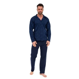 Pánske pyžamo 114/80 CORNETTE - vyrobené z kvalitnej bavlny - vzorované tričko s dlhými rukávmi a vreckami - zapínanie na gombíky - pohodlné tmavomodré dlhé nohavice