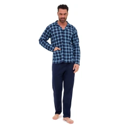 Pánske pyžamo 114/81 CORNETTE - vyrobené z kvalitnej bavlny - kockované tričko s dlhými rukávmi a vreckami - zapínanie na gombíky - pohodlné tmavomodré dlhé nohavice
