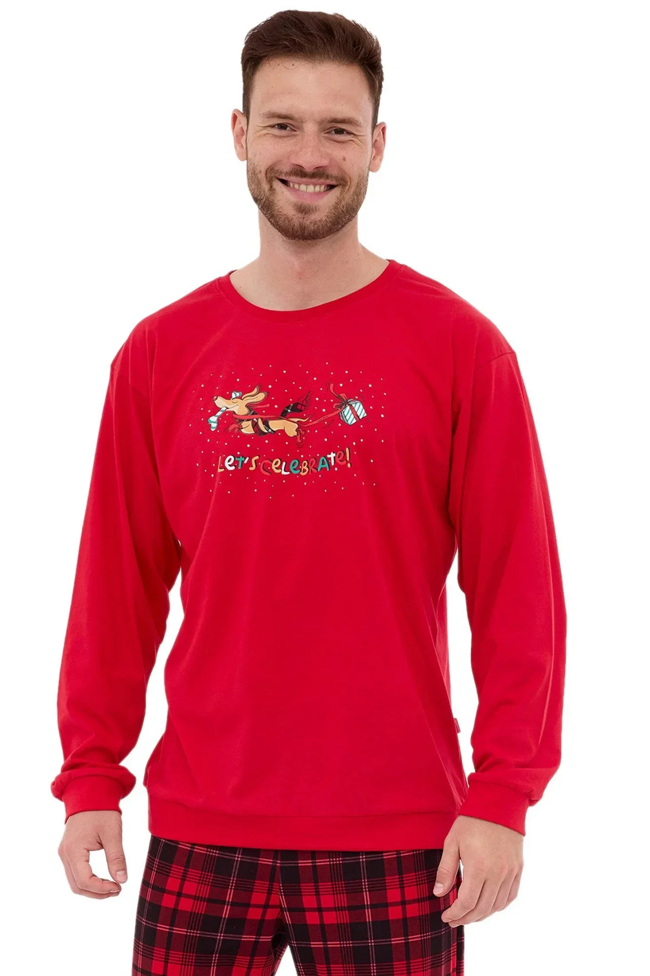 Pánske pyžamo 115/255 Celebrate CORNETTE - vyrobené z kvalitnej bavlny - červené tričko s dlhými rukávmi - zdobené potlačou na prednej strane - dlhé kárované nohavice - vianočná kolekciaZloženie materiálu: 100% bavlna