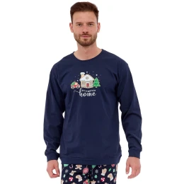 Pánské pyžamo 115/256 Home CORNETTE - z vysoce jakostní bavlny - tmavě modré tričko s dlouhými rukávy - zdobené potiskem na přední straně - dlouhé vzorované kalhoty - vánoční kolekce