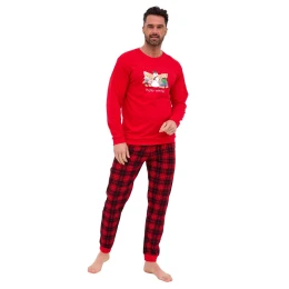 Pánske pyžamo 115/289 Winter CORNETTE - vyrobené z kvalitnej bavlny - červené tričko s dlhými rukávmi - okrúhly výstrih - prednú stranu zdobí potlač - dlhé kárované nohavice ukončené šnúrkou na stiahnutie