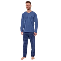 Pánske pyžamo 122/261 Clark CORNETTE - vyrobené z kvalitnej bavlny - tmavomodré tričko s dlhými rukávmi - zdobené vreckom na prednej strane - pohodlné vzorované dlhé nohaviceZloženie materiálu: 100% bavlna