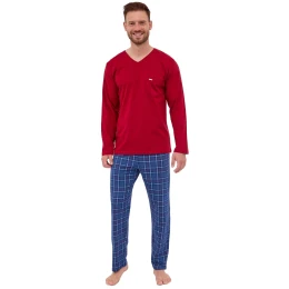 Pánske pyžamo 122/262 Gordon plus CORNETTE - vyrobené z kvalitnej bavlny - bordové tričko s dlhými rukávmi - zdobené vreckom na prednej strane - pohodlné vzorované dlhé nohavice