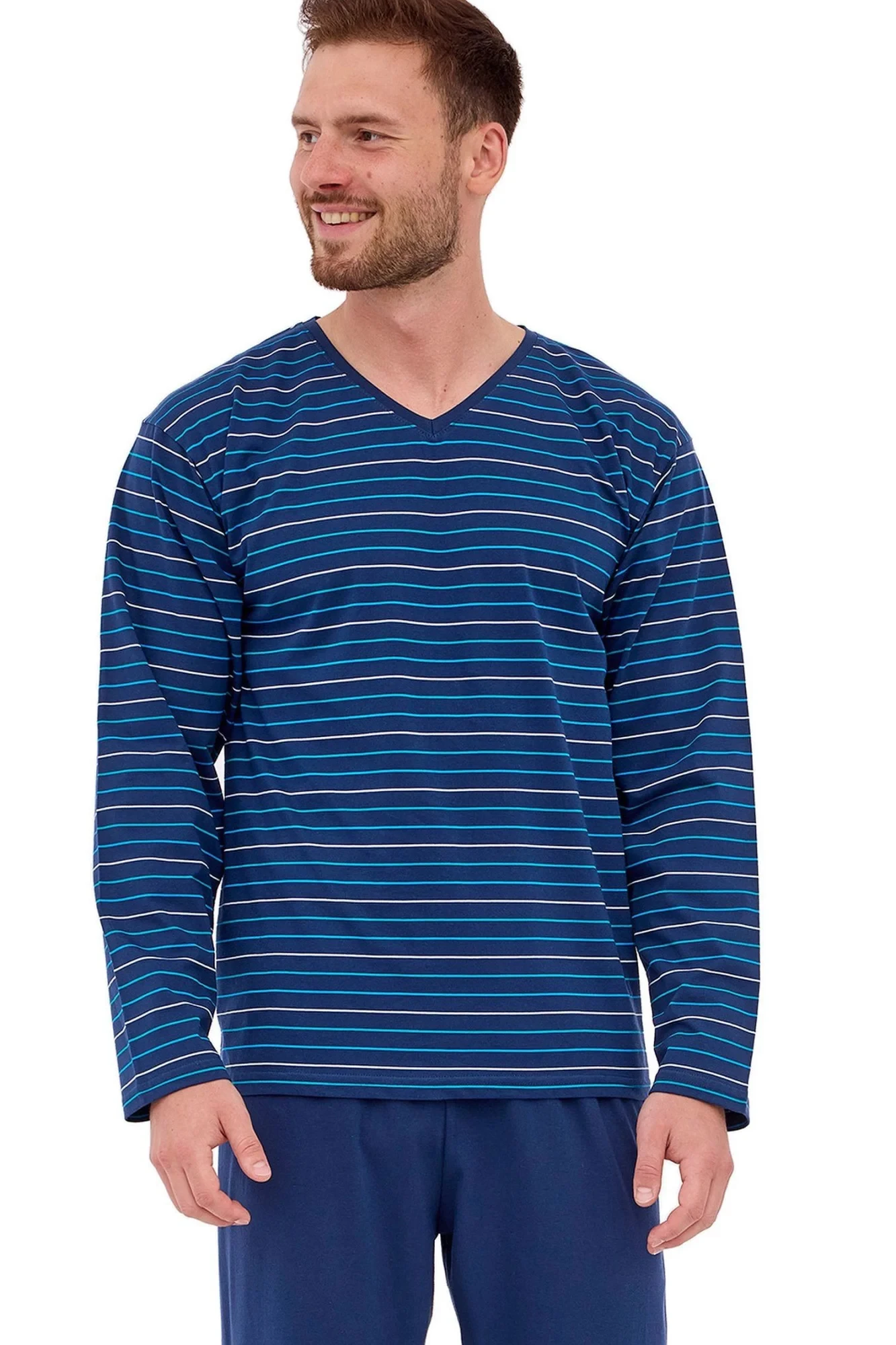 Pánske pyžamo 139/43 Various CORNETTE - tmavomodré - vyrobené z kvalitnej bavlny - pruhované tričko s dlhými rukávmi - pohodlné jednofarebné dlhé nohaviceZloženie materiálu: 100% bavlna