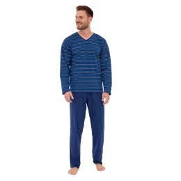 Pánske pyžamo 139/43 Various CORNETTE - tmavomodré - vyrobené z kvalitnej bavlny - pruhované tričko s dlhými rukávmi - pohodlné jednofarebné dlhé nohavice