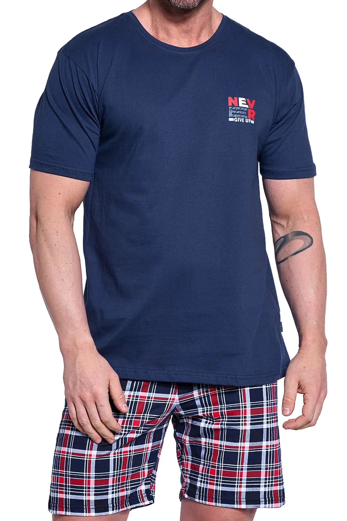 Pánske pyžamo 326/286 Never 3 CORNETTE - vyrobené z kvalitnej bavlny - džínsové tričko s krátkymi rukávmi - polokruhový výstrih - zdobené potlačou na prednej strane - károvaná košeľaZloženie materiálu: 100% bavlna