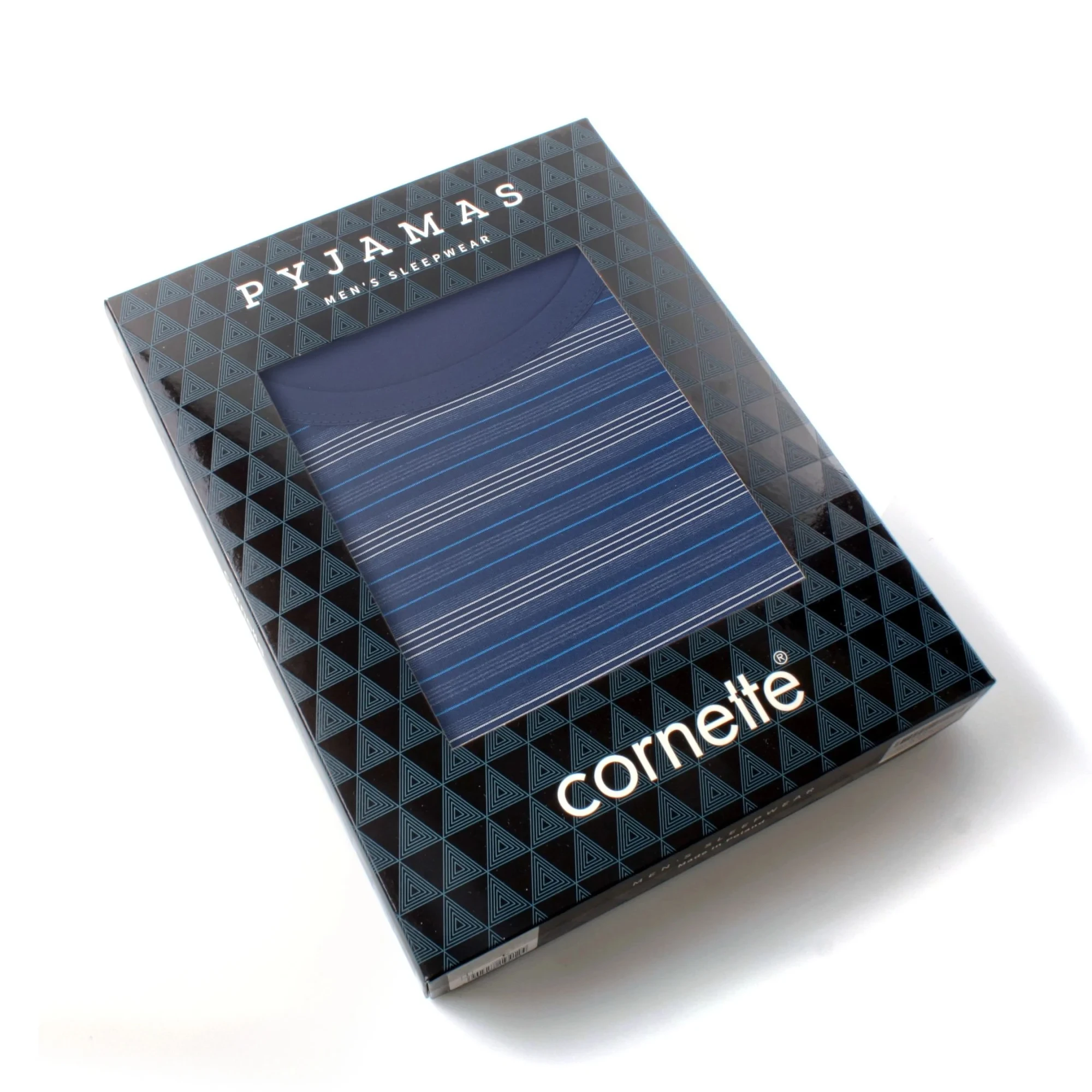 Pánske pyžamo 338/36 Various CORNETTE - tmavomodré - vyrobené z kvalitnej bavlny - pruhované tričko s krátkymi rukávmi - pohodlné jednofarebné šortky Zloženie materiálu: 100% bavlna
