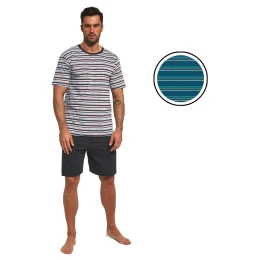 Pánske pyžamo 338/42 Various CORNETTE - svetlomodré - vyrobené z kvalitnej bavlny - pruhované tričko s krátkym rukávom - pohodlné jednofarebné šortky
