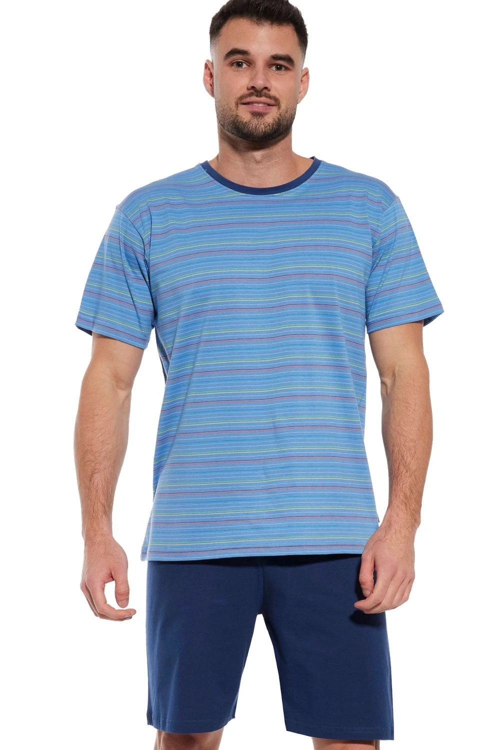 Pánske pyžamo 338/47 Various CORNETTE - svetlomodré - vyrobené z kvalitnej bavlny - pruhované tričko s krátkym rukávom - pohodlné jednofarebné šortkyZloženie materiálu: 100% bavlna