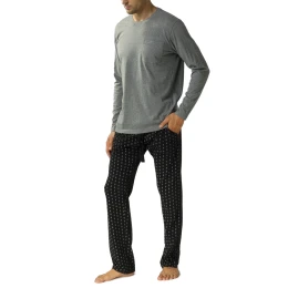 Pánske pyžamo 373 melange Atlantic - vyrobené z kvalitnej bavlny - melanžové tričko s dlhými rukávmi - vrecko na prednej strane - dlhé čierne vzorované nohavice s vreckami - nastaviteľná šnúrka v páse