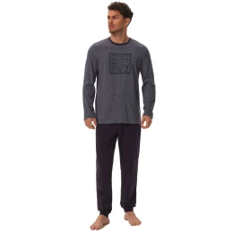 Pánske pyžamo 41909 Jarvis blue HENDERSON - vyrobené z veľmi kvalitnej bavlny - modré tričko s dlhým rukávom - zdobené potlačou na prednej strane - dlhé jednofarebné nohavice