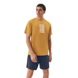 Pánske pyžamo 42600 Sun yellow HENDERSON - vyrobené z kvalitnej bavlny - žlté tričko s krátkymi rukávmi - zdobené potlačou na prednej strane - jednofarebné šortky - elastický pás